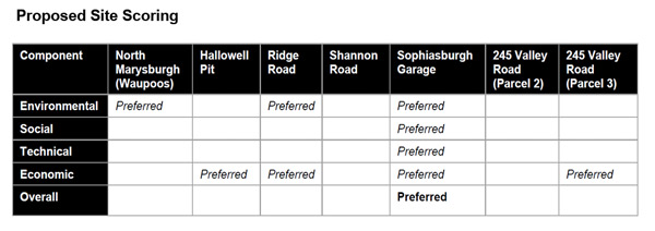 The Sophiasburgh garage was selected as the preferred site to house an organics processing facility as showing the most promise as a potential organics management site with its advantages outweighing disadvantages.