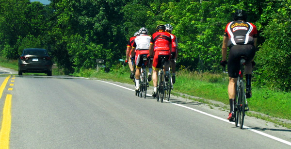 An important ignored point; Motorists are required by recent transport law to give 36 inches clearance to cyclists.