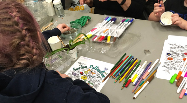 Families could enjoy some fun hands-on activities for the kids where they could get their hands into some soil to pot up their own houseplant cutting to take home, or winter sow some native seeds, also to take home. For those with an artistic talent, drawing and colouring were also popular at the kids’ table.