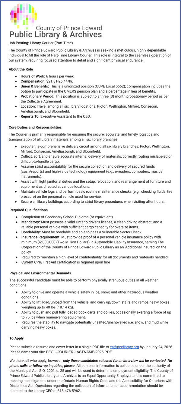 Help wanted notices for Prince Edward County – Home care providers, hospitality, hospital volunteers needed – and more!