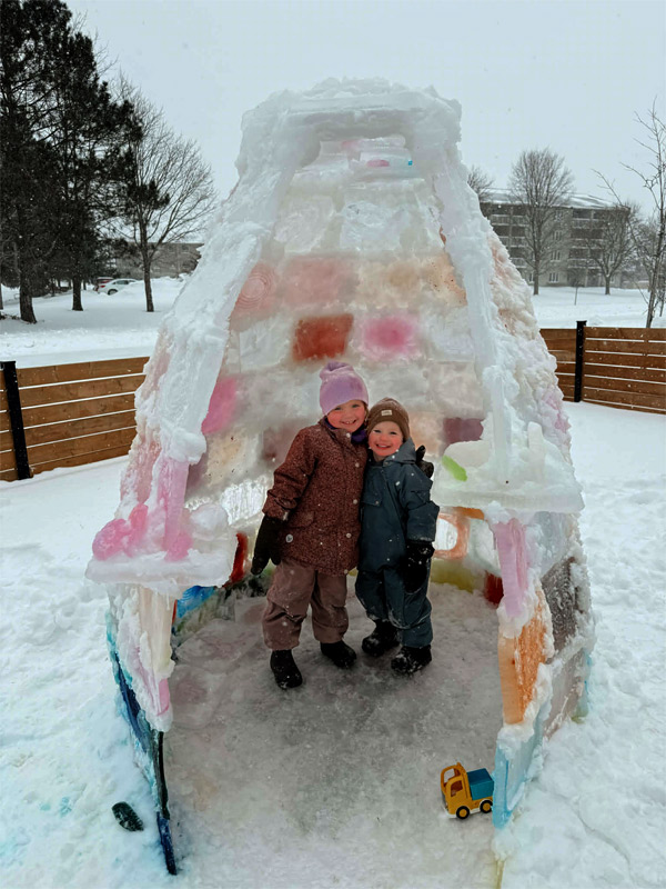 This weekend’s extreme cold and snow were just what Anna-Mae and Jhett Wikkerink needed – along with a little help from mom and dad – to create a colourful igloo at their home in Picton.